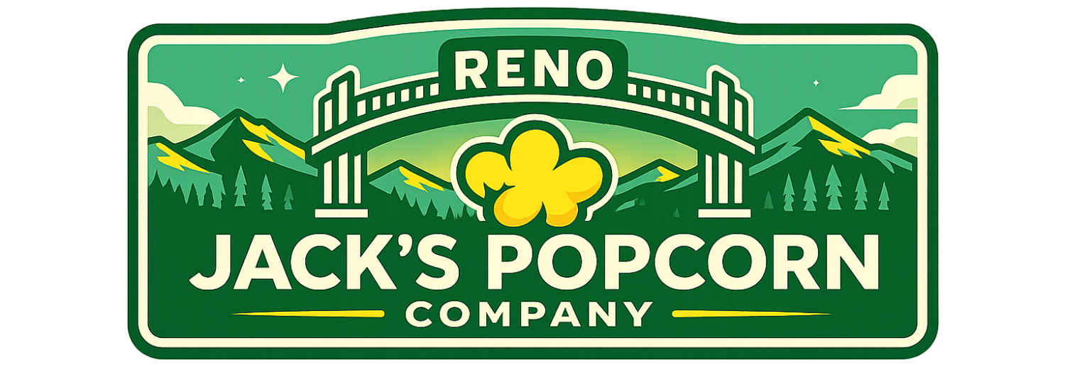 You will see Jack and his Pop Cart at events in the Reno/Sparks area serving fresh popped corn. We have a new contract with the Convention Center, so if you are attending a large event there, come find us!  You can also order a six pack or tin, or a whole batch for a party for pick up in Reno.